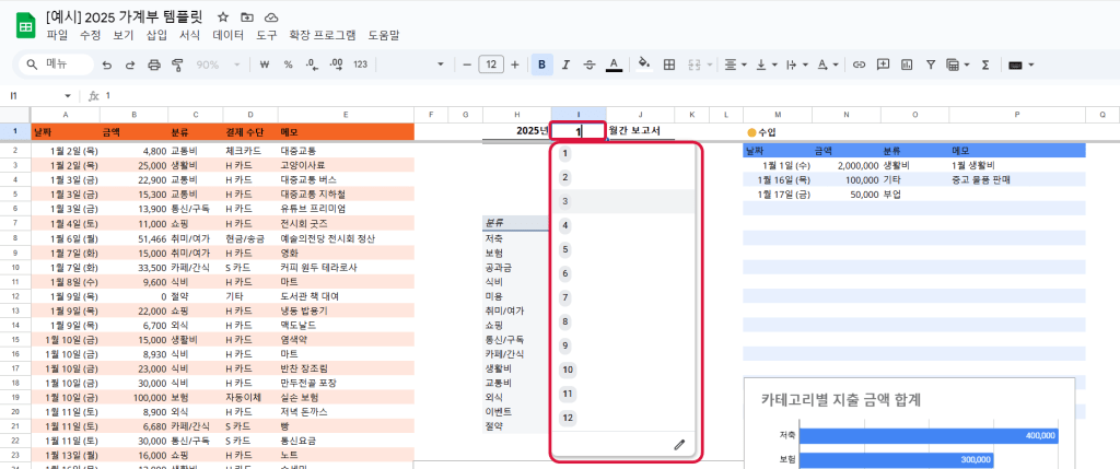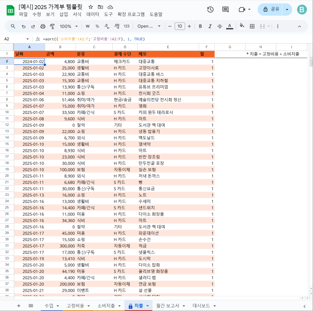 제 블로그에서 공유하는 가계부 템플릿 스프레드시트를 기준으로