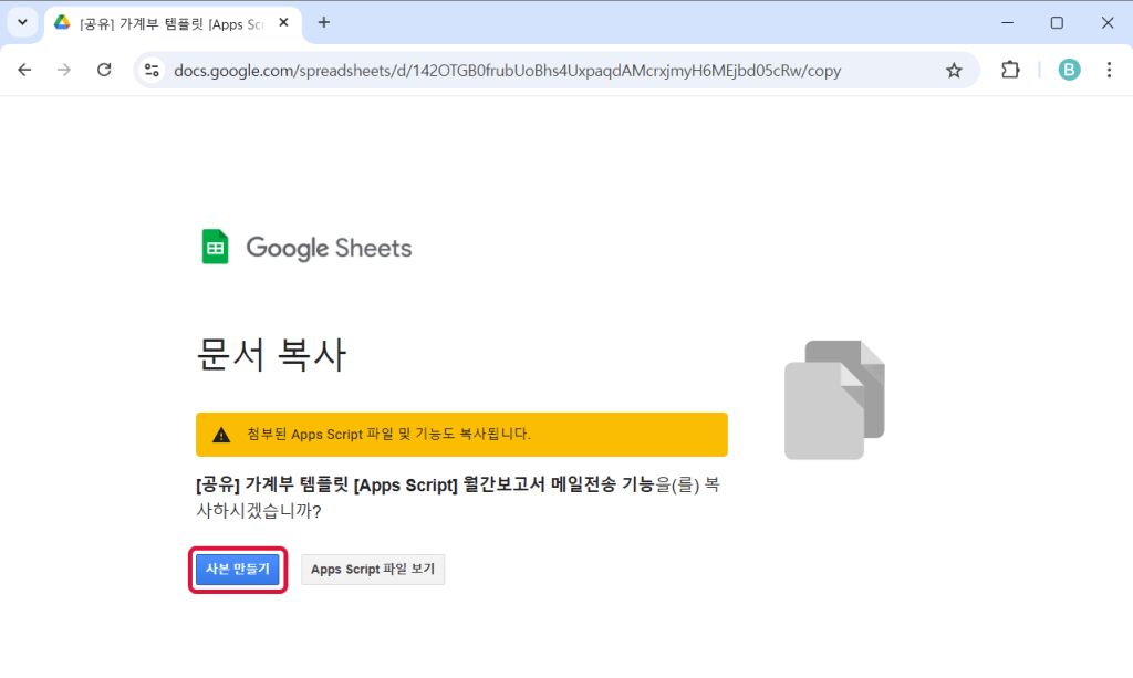 조금 번거로우시겠지만 템플릿 공유 링크로 다시 사본을 만드신후