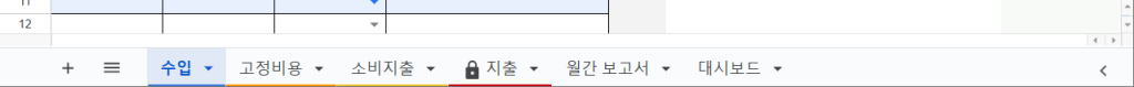 • 수입 : 수입, 들어오는 돈을 입력하는 시트