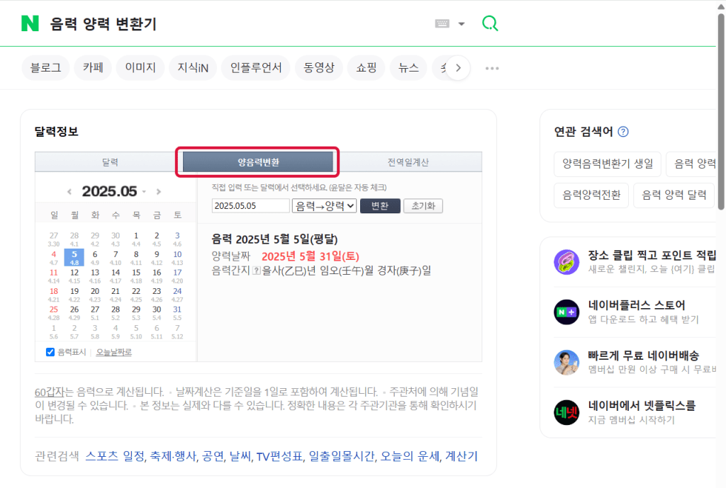 인터넷 검색을 통해 온라인 음력/양력 변환 계산기를 활용하여 음력의 날짜를 양력으로 변환하신 후 기념일 시트에 추가해 주시기 바랍니다.